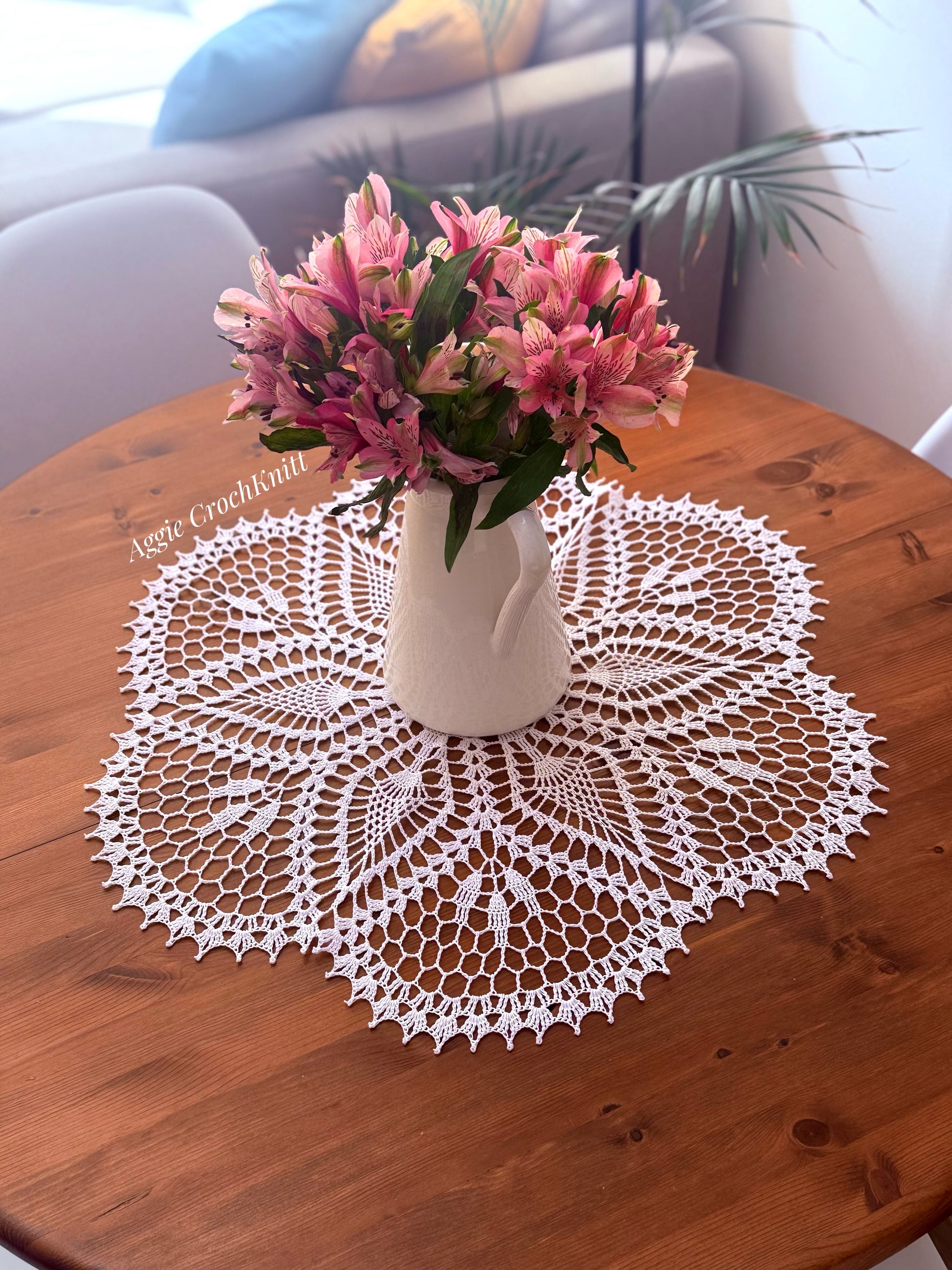 The intricate pineapple lace pattern creates a graceful, floral-like effect, evoking the freshness. A timeless piece, ideal as a charming decoration or a heartfelt, handmade gift.