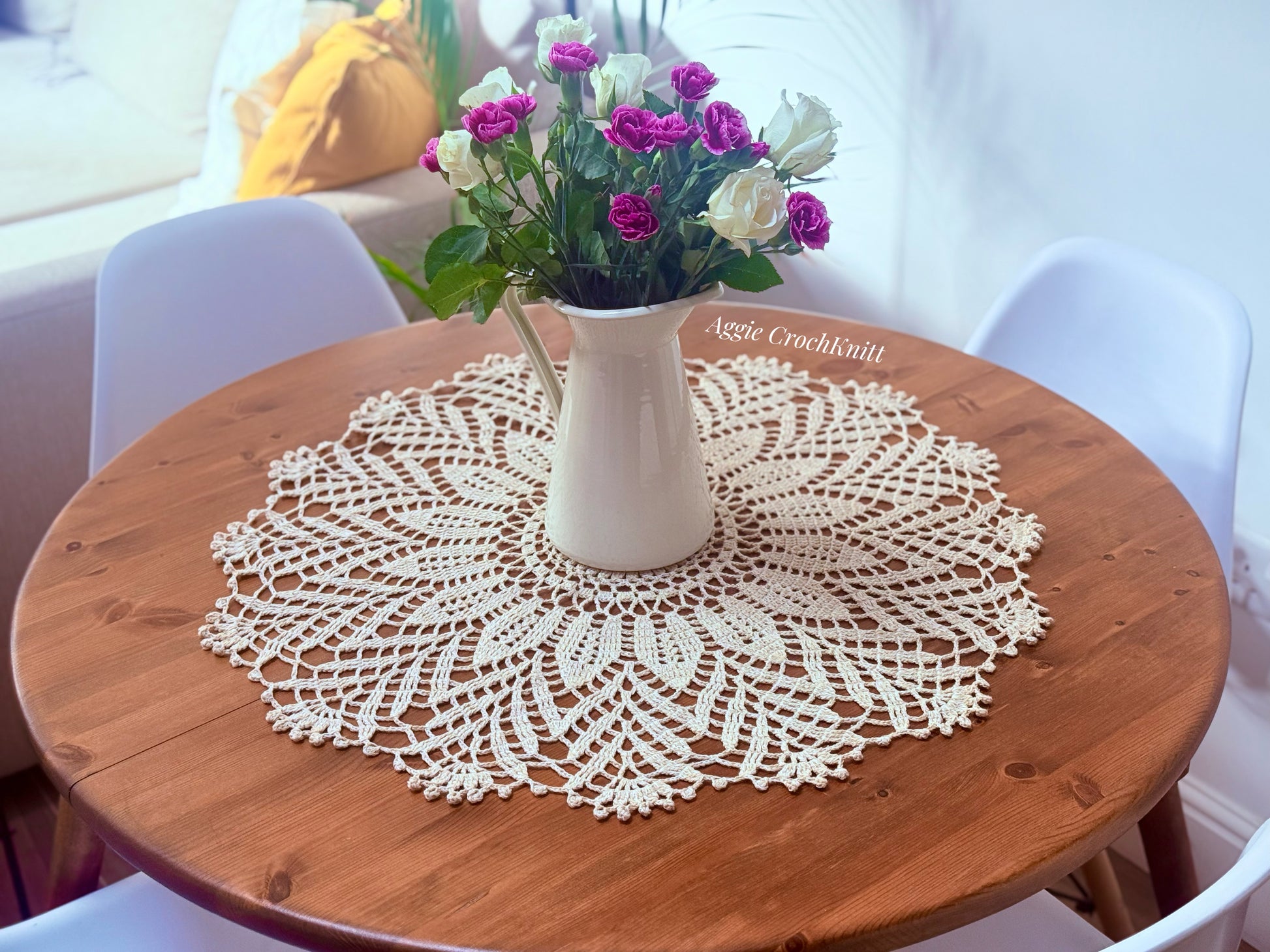A delicate, handmade crochet doily that adds elegance and a unique charm to any interior. The airy, nature-inspired lace design makes it a perfect decoration for a dining table, sideboard, or coffee table. Ideal for boho, vintage, or classic styles. Perfect for everyday use as well as a beautiful touch for special occasions and holidays.